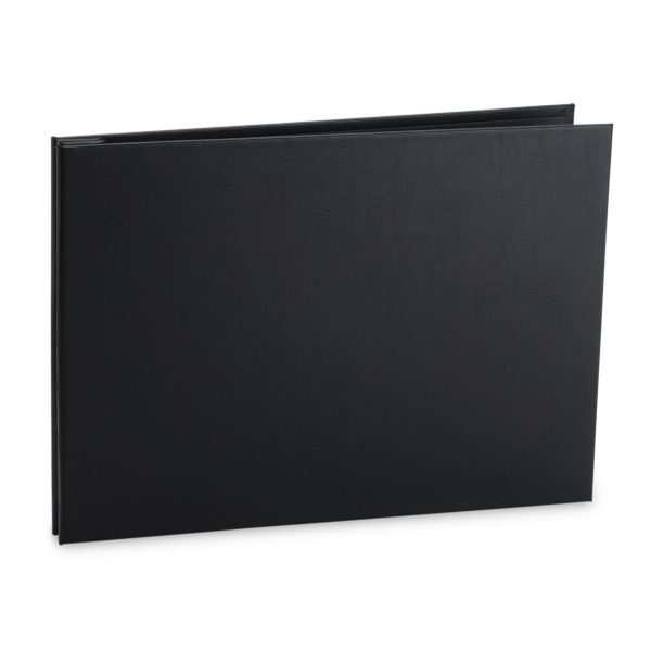- Black bonded leather and archival bookbinder's cloth construction